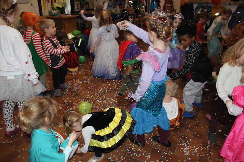 Bunt verkleidet starten die Kita Kinder in einen abwechslungsreichen Vormittag mit Spielen wie der "Reise nach Jerusalem" und einem lustigen Schaumkusswettessen!